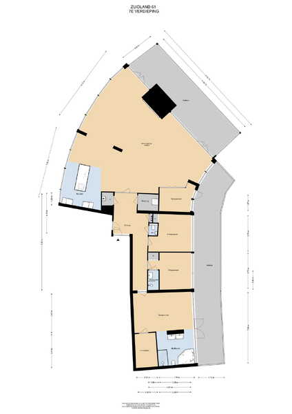 You reach the penthouse via the elevator to the 7th floor. The double entrance, regular and via direct access from the elevator, further emphasizes the penthouse feeling. Upon entering a spacious and bright connecting hall with access to the living room. The living room is overwhelming! That is the feeling that everyone will have upon entering this fantastic living space. An countless number of floor-to-ceiling windows, light from all sides and connecting doors everywhere to the surrounding outdoor spaces. In short, a real penthouse as you would expect from a penthouse. The layout options are endless due to the approximately 140m² of free space. The entire room has comfortable underfloor heating. The walls are plastered smoothly throughout the penthouse. The gray tiled floor has been laid without barriers in the living room and the hall. The underfloor heating, in combination with the air conditioning, provides a climate that can be fully adjusted to your wishes. In addition to the double doors to the conservatory and the terrace, there are also doors to the chamois balcony on the outer ring.