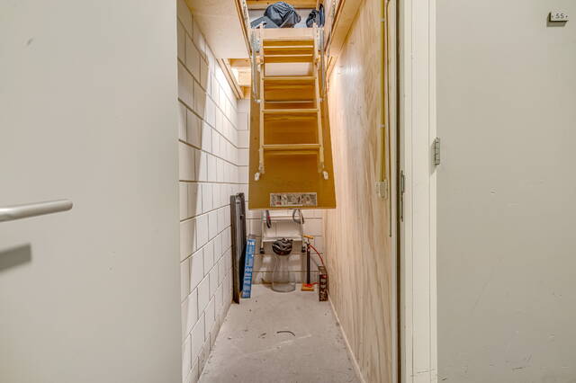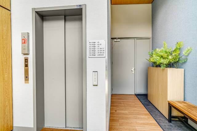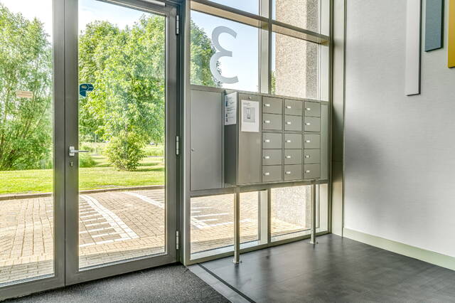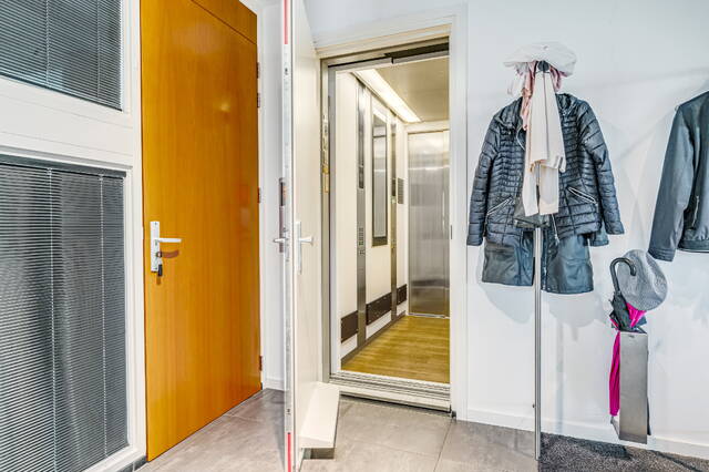 Ground floor, lockable entrance, with mailboxes and doorbells with videophone installation, high hall with elevator and stairs. Directly next to the entrance is access to the private bicycle shed. You can also take the elevator to your apartment from the covered parking deck on the 2nd floor.