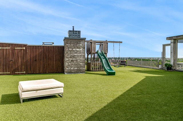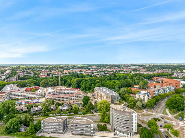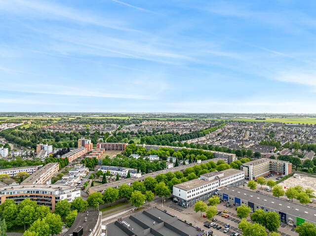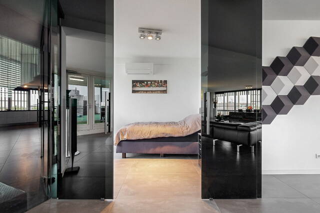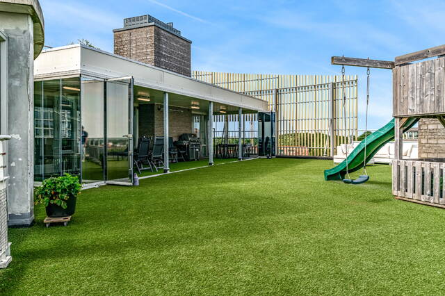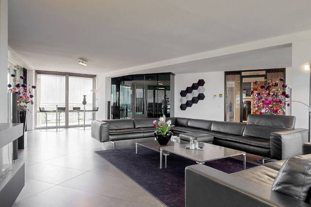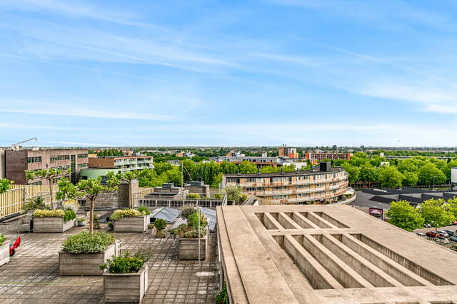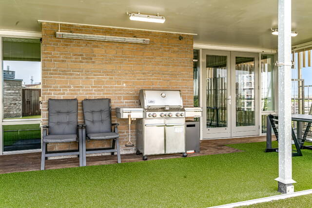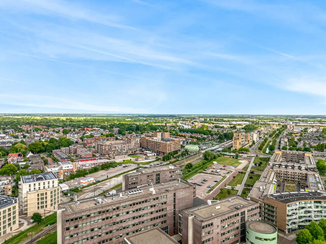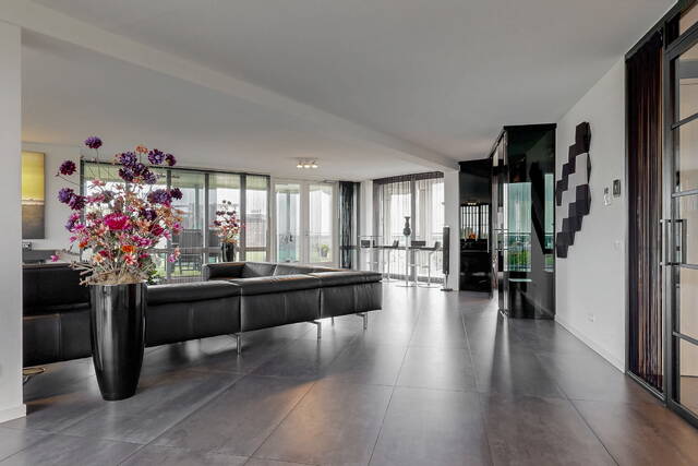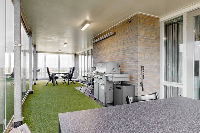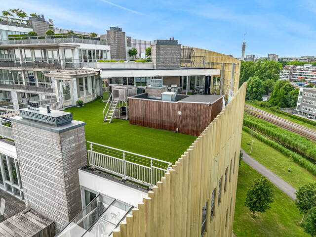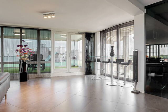In the center of Alphen aan den Rijn, within walking distance of the railway station, unique penthouse on the 7th floor of a modern apartment complex with a shopping center on the ground floor. You have never seen anything like this before, with the elevator up to your apartment, a living room of no less than 140 m2 and an outdoor area (terrace and balcony) of approximately 250 m2. There are also 3 spacious bedrooms, 2 bathrooms, a custom-made designer kitchen, underfloor heating, air conditioning, a separate work/hobby room and a conservatory.