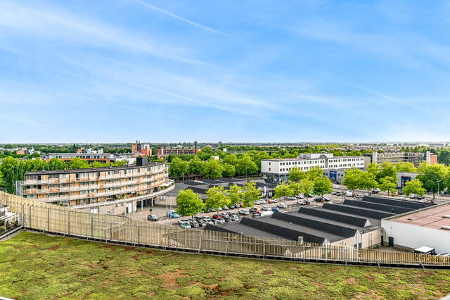 Het dakterras gaat alle superlatieven te boven! Het terras is voorzien van kunstgras met een ruime serre en een houten berging. De uitzichten rondom zijn prachtig. De skyline van o.m. Rotterdam en Den Haag zijn bij helder weer goed zichtbaar. Maar uiteraard ook dichter bij huis een mooi uitzicht over het centrum van Alphen aan den Rijn en het Bospark. Vanaf het grote dakterras loopt u door over het terras aan de binnenring met hier een speciaal ontworpen zon doorlatende betonverkapping. Langs het terras aan de binnenring is ook nog een ingenieuze verschuifbare zonwering aanwezig.