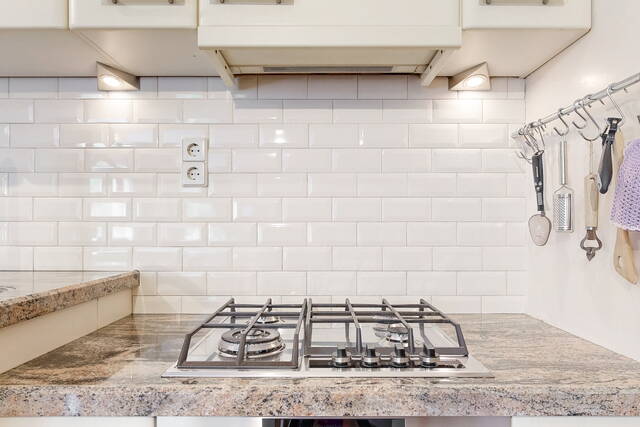 De open keuken heeft een natuurstenen aanrechtblad en is uiteraard voorzien van diverse (inbouw) apparatuur zoals een oven, vaatwasser, 4 pits gasfornuis met afzuigkap en een koelkast. Bij de keuken is een gezellig (ontbijt)barretje gecreëerd, leuk om te ontbijten of even een kopje koffie te nuttigen.