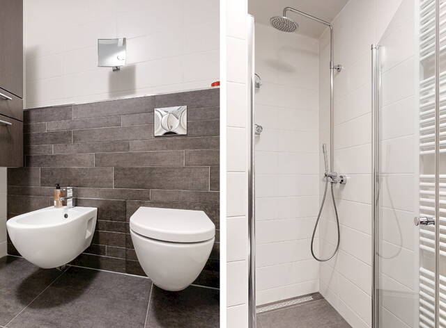 Verder zijn er 2 slaapkamers en een moderne luxe badkamer met ruime inloopdouche, een bidet, (sani-broyeur) toilet, wastafelmeubel met spiegelkast en een design radiator.