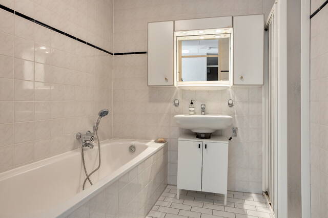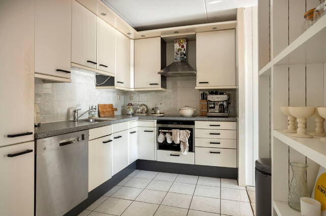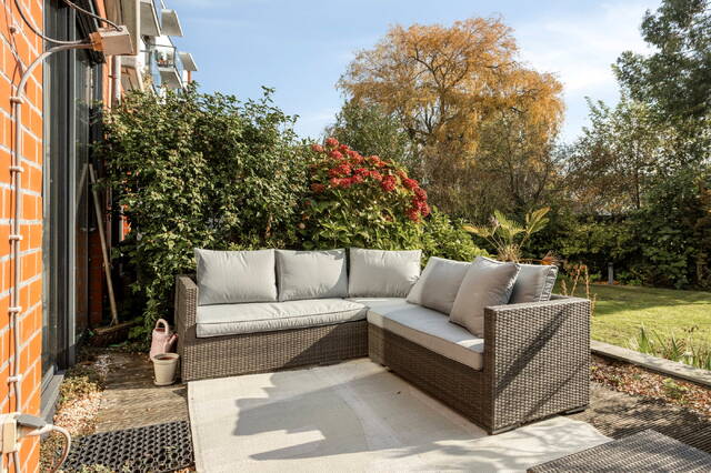 This stunning 3-room apartment offers comfort, space, and a beautiful view of the water. Situated in a well-maintained apartment complex, you can enjoy a generous living room and a lovely sunny terrace at the rear. From your terrace, you overlook the peaceful courtyard garden and the water. The courtyard is excellently maintained and features a charming wooden chalet for communal use and a terrace directly by the water.