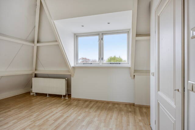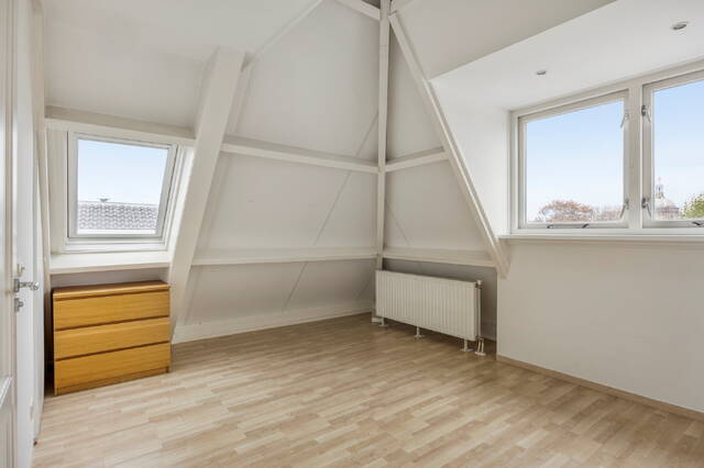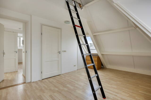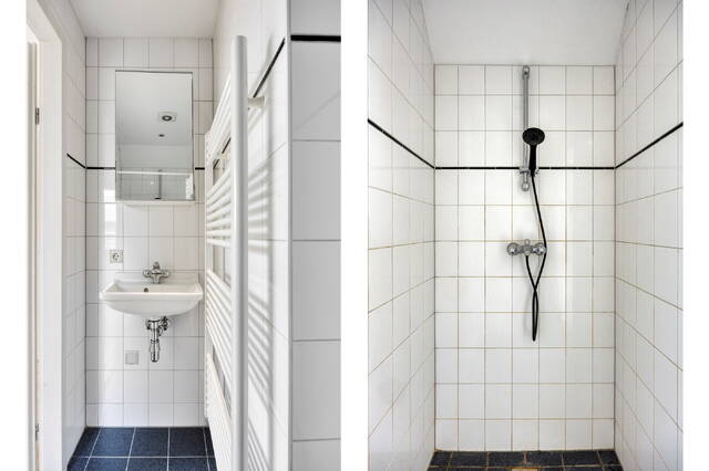 De slaapkamer is comfortabel en rustig gelegen, met een fraai uitzicht over de historische daken van Leiden. De knusse badkamer beschikt over een inloopdouche, wastafel en designradiator. In een aparte kast vindt u de cv-installatie en de aansluiting voor de wasmachine, met extra opbergruimte. Ook het toilet is separaat en voorzien van een fonteintje.