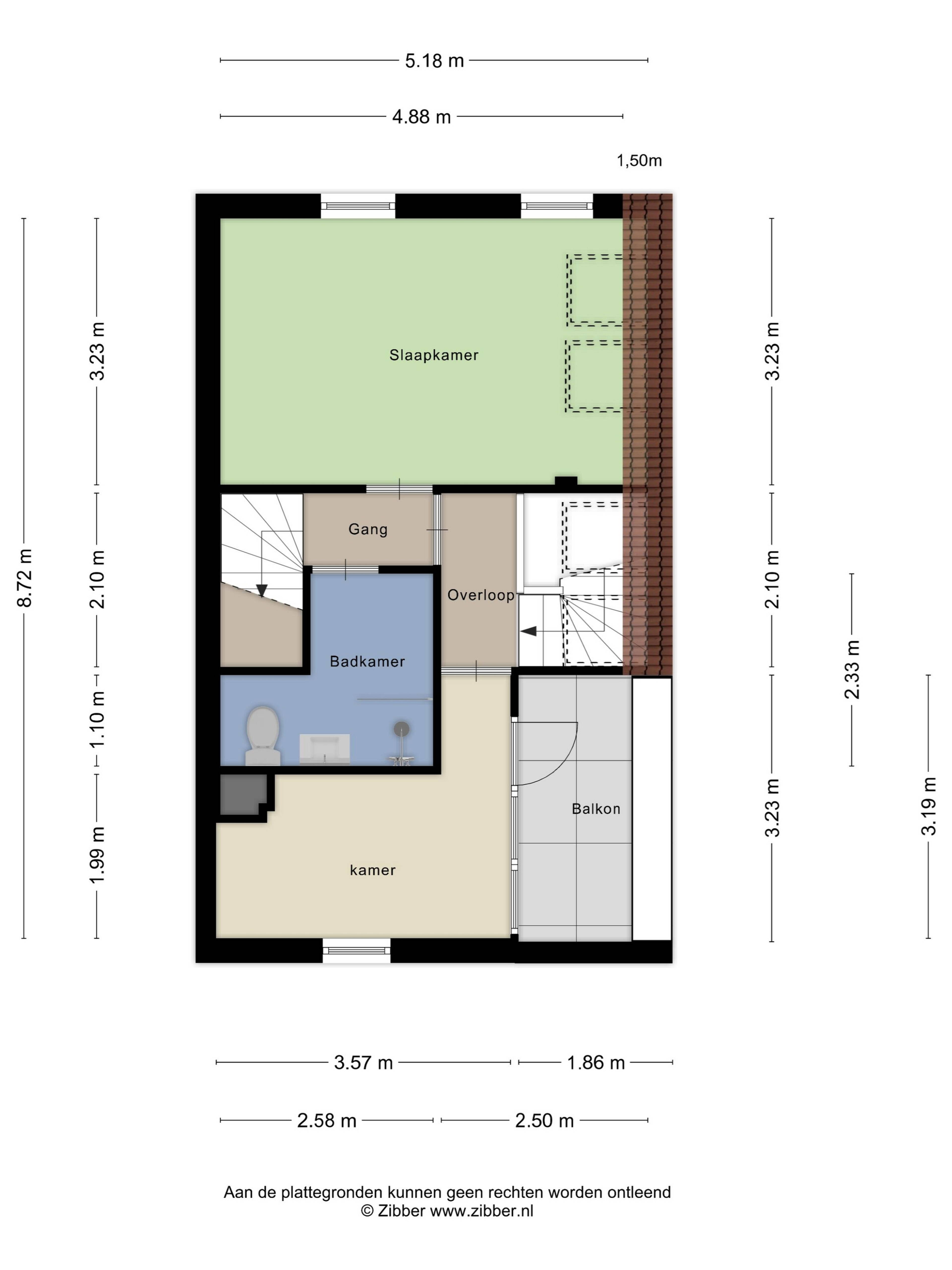 De tweede verdieping beschikt over twee slaapkamers en een badkamer. De slaapkamer aan de voorzijde biedt wederom uitzicht op de gracht, terwijl de slaapkamer aan de achterzijde grenst aan het balkon op het zuidwesten, waar in alle rust en privacy van de zon en het uitzicht over historisch Leiden kan worden genoten. De badkamer is netjes en voorzien van een douche, wastafel en toilet.