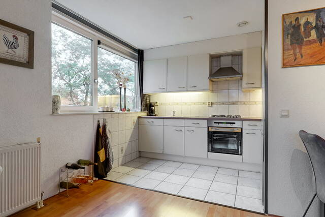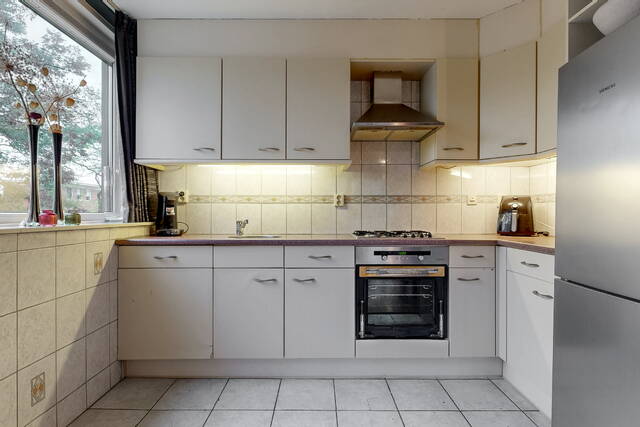 Entree, hal met meterkast, het toilet een technische ruimte met opstelplaats voor de wasmachine, droger, mechanische ventilatie-unit en CV-combi-installatie. Via de hal bereikt u de lichte, ruime woonkamer welke toegang biedt tot de serre en het balkon. De open keuken is voorzien van diverse (inbouw)apparatuur zoals een 4 pits kookplaat met afzuigkap, een koel-vries combinatie, combioven magnetron en een vaatwasser. Aan de andere kant van het appartement bevinden zich twee ruime en lichte slaapkamers en de badkamer. De badkamer is voorzien van een ligbad, aparte douche, een wastafel en een verwarmingsradiator.