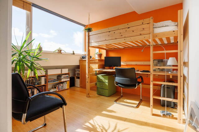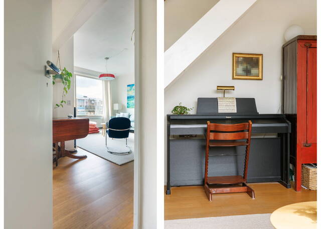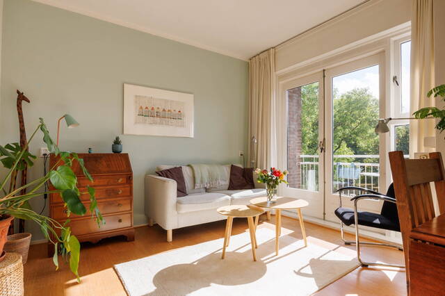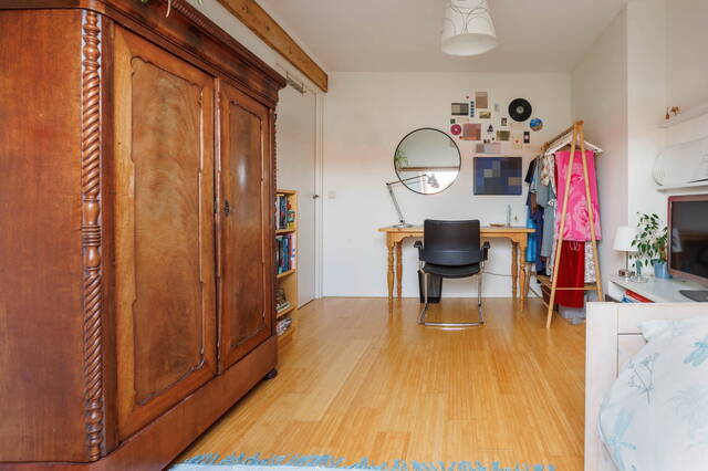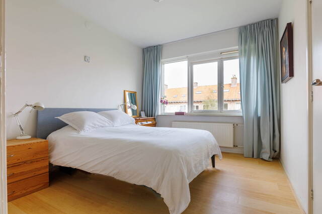 Very Spacious and Bright Maisonette with Five Bedrooms, Two Bathrooms, Two Balconies, and a Large Storage Room. The apartment is located on the 3rd and 4th floors of a well-maintained apartment complex and offers balconies at both the front and rear. The rear balcony overlooks the large communal courtyard garden. Thanks to the many windows, the apartment enjoys an abundance of natural light. A beautifully maintained and charming maisonette in the lovely Professorenwijk area!