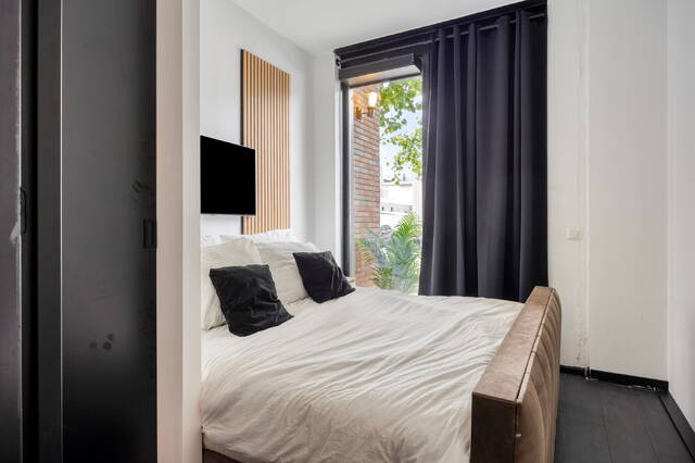 De slaapkamer is ruim en rustig gelegen aan de achterzijde van de woning, direct naast de badkamer. De badkamer is praktisch ingedeeld en beschikt over een douche, wastafel en toilet. Verder is er een handige berging en een extra kastaanwezig voor extra opbergruimte.