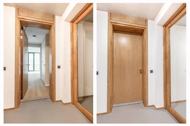 Afgesloten entree met video intercom, brievenbussen, toegang tot de lift en het trappenhuis.