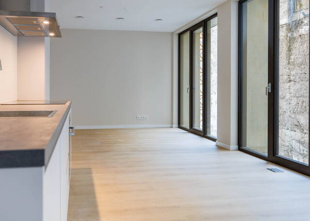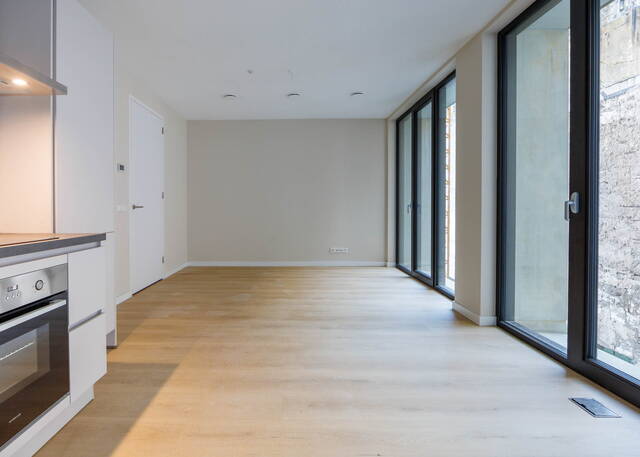 Bij binnenkomst leidt de hal naar het separate toilet en de leefruimte. De lichte woonkamer, met hoge ramen en sfeervolle industriële accenten, vormt een fijne basis om een comfortabele woonruimte naar eigen smaak te creëren. De open keuken is zeer recent geplaatst en voorzien van diverse inbouwapparatuur. Aansluitend aan de woonkamer ligt de slaapkamer met badkamer en suite, wat zorgt voor een praktische en rustige indeling. De badkamer is nog niet afgewerkt, waardoor volop ruimte bestaat om deze geheel naar eigen smaak te realiseren. Desgewenst kan de afwerking, binnen een stelpost van € 10.000,-, door verkoper worden verzorgd.