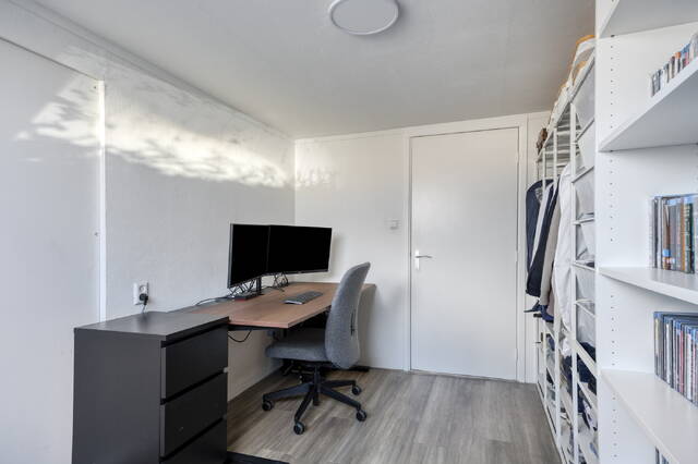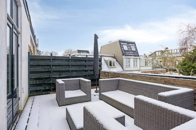 Zowel via de openslaande deuren in de woonkamer als vanuit de keuken is er directe toegang tot het royale dakterras van circa 20 m². Dankzij de vrije ligging is dit een heerlijke plek om in het voorjaar en de zomer volop van de zon te genieten en in alle rust buiten te zitten.