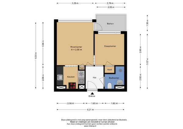 - VvE bijdrage € 218,-- per maand (incl. water en excl. voorschot stookkosten van € 42,-- per maand)