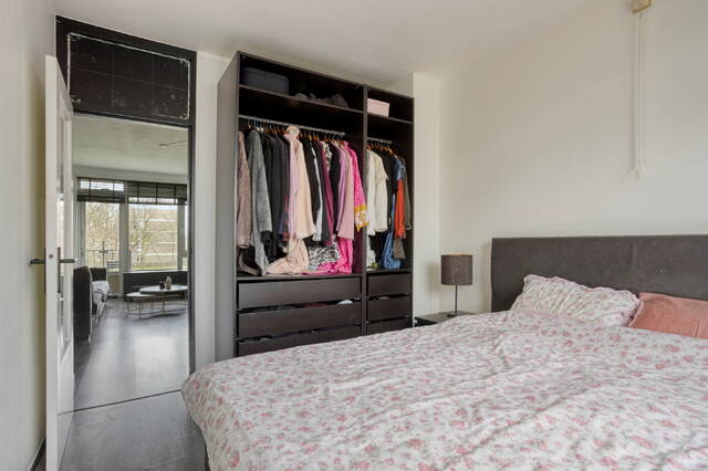 Het appartement beschikt over twee slaapkamers. De slaapkamer aan de achterzijde geeft toegang tot het zonnige balkon op het zuiden. De slaapkamer aan de voorzijde is eveneens licht dankzij het grote raam en biedt tevens toegang tot de badkamer. De badkamer is ingericht met een douche, wastafel en radiator.