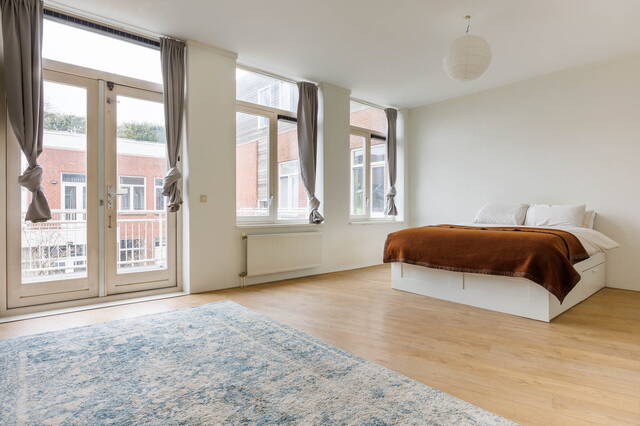 De masterbedroom is zeer ruim en bevindt zich aan de rustige achterzijde van het appartement, wat zorgt voor optimale stilte en ontspanning. Vanuit deze slaapkamer heeft u toegang tot het tweede balkon met uitzicht op de goed onderhouden binnentuin.
