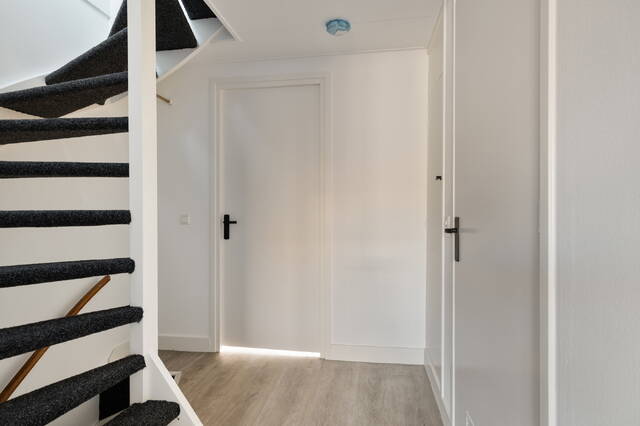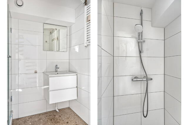 De entree van het appartement bevindt zich op de eerste etage. Via de trap kom je op de tweede verdieping, waar zich een overloop bevindt met toegang tot twee ruime slaapkamers en de badkamer. De badkamer is netjes afgewerkt en voorzien van een douche, wastafel, wastafelmeubel en handdoekradiator.