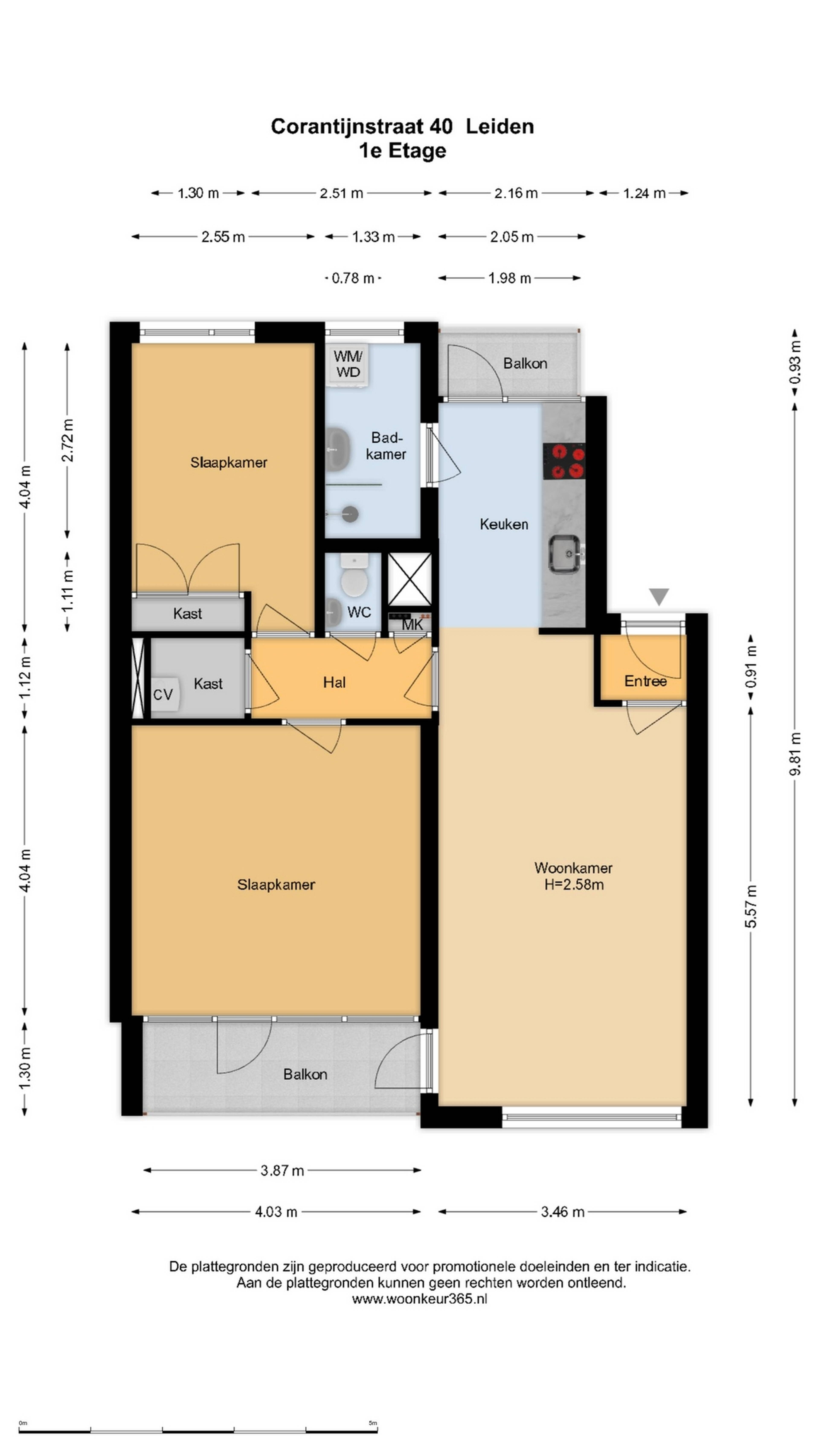 De open keuken is modern uitgevoerd en voorzien van een 4-pits gaskookplaat, oven, afzuigkap, koel-/vriescombinatie en sfeervolle plafondspotjes. Vanuit de keuken is er toegang tot het tweede balkon aan de achterzijde, gelegen op het noorden.