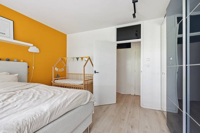 Beide slaapkamers zijn goed van formaat. Eén slaapkamer biedt directe toegang tot het balkon, terwijl de andere is voorzien van een praktische vaste kast.