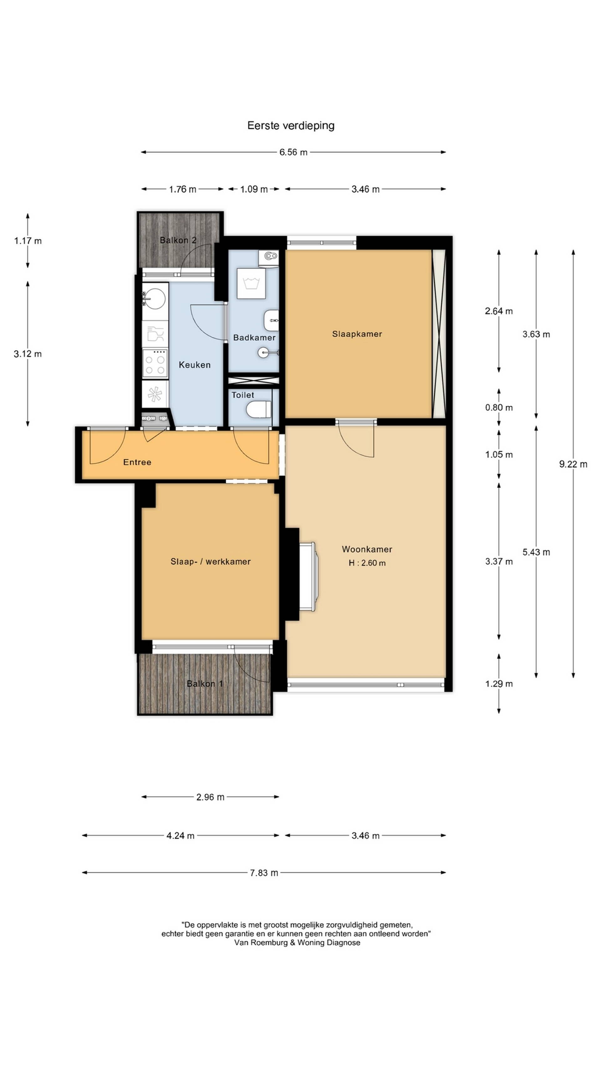 De gesloten keuken is voorzien van diverse inbouwapparatuur, zoals een vaatwasser, een 4-pits gaskookstel, een afzuigkap en een koel-vriescombinatie. Vanuit de keuken is er toegang tot de moderne badkamer met inloopdouche, wastafelmeubel, wasmachineaansluiting en opstelling van de cv-ketel. Het tweede balkon is eveneens via de keuken bereikbaar.