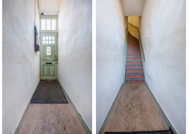 Private entrance via your own path leading to a spacious hallway with staircase to the first floor.
