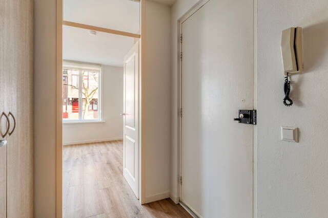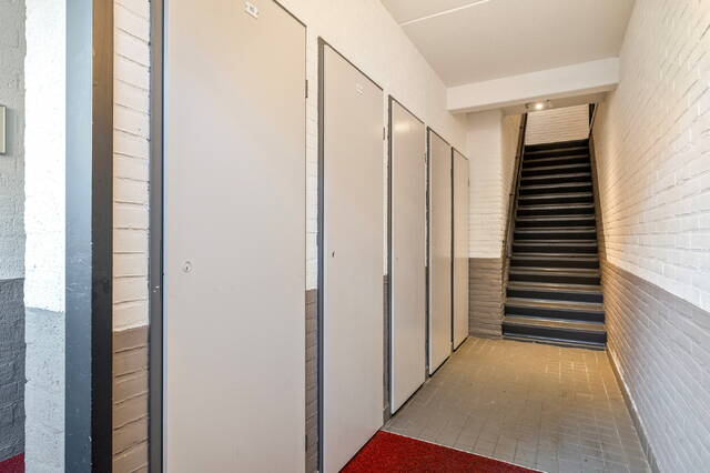 U betreedt het pand via de gezamenlijke entree op de begane grond, voorzien van brievenbussen en bellentableau. Hier bevindt zich tevens de eigen privéberging. Via de trap bereikt u de woning op de eerste verdieping.