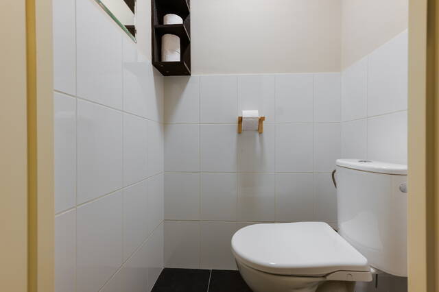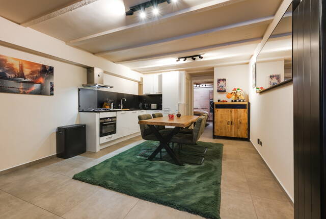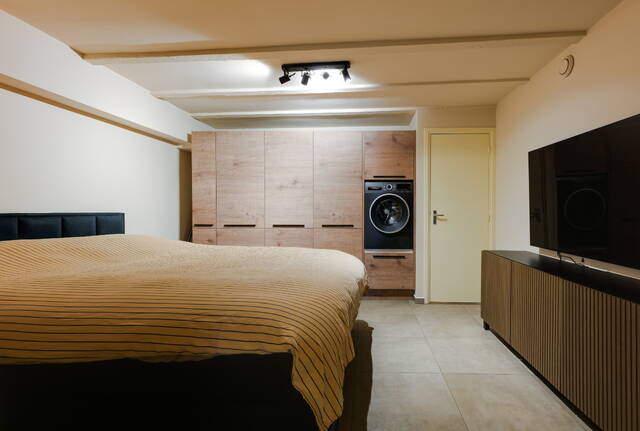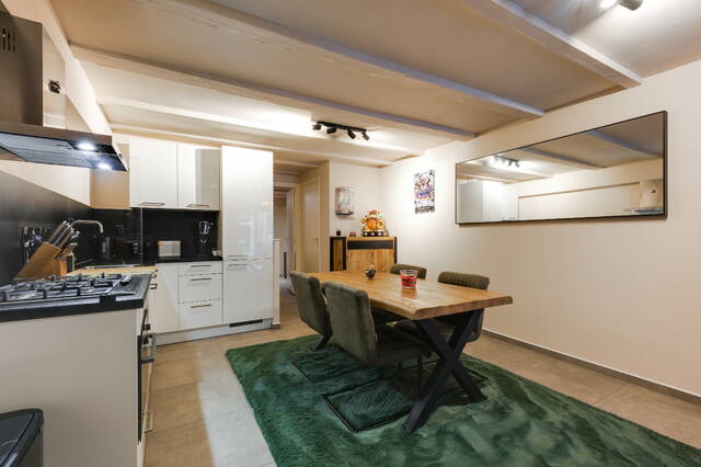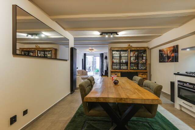 De royale woonkamer met open leefkeuken vormt het hart van de woning. Dankzij de praktische indeling is er voldoende ruimte voor zowel een comfortabele zithoek als een eethoek. De moderne keuken (vernieuwd in 2023) is voorzien van diverse inbouwapparatuur.