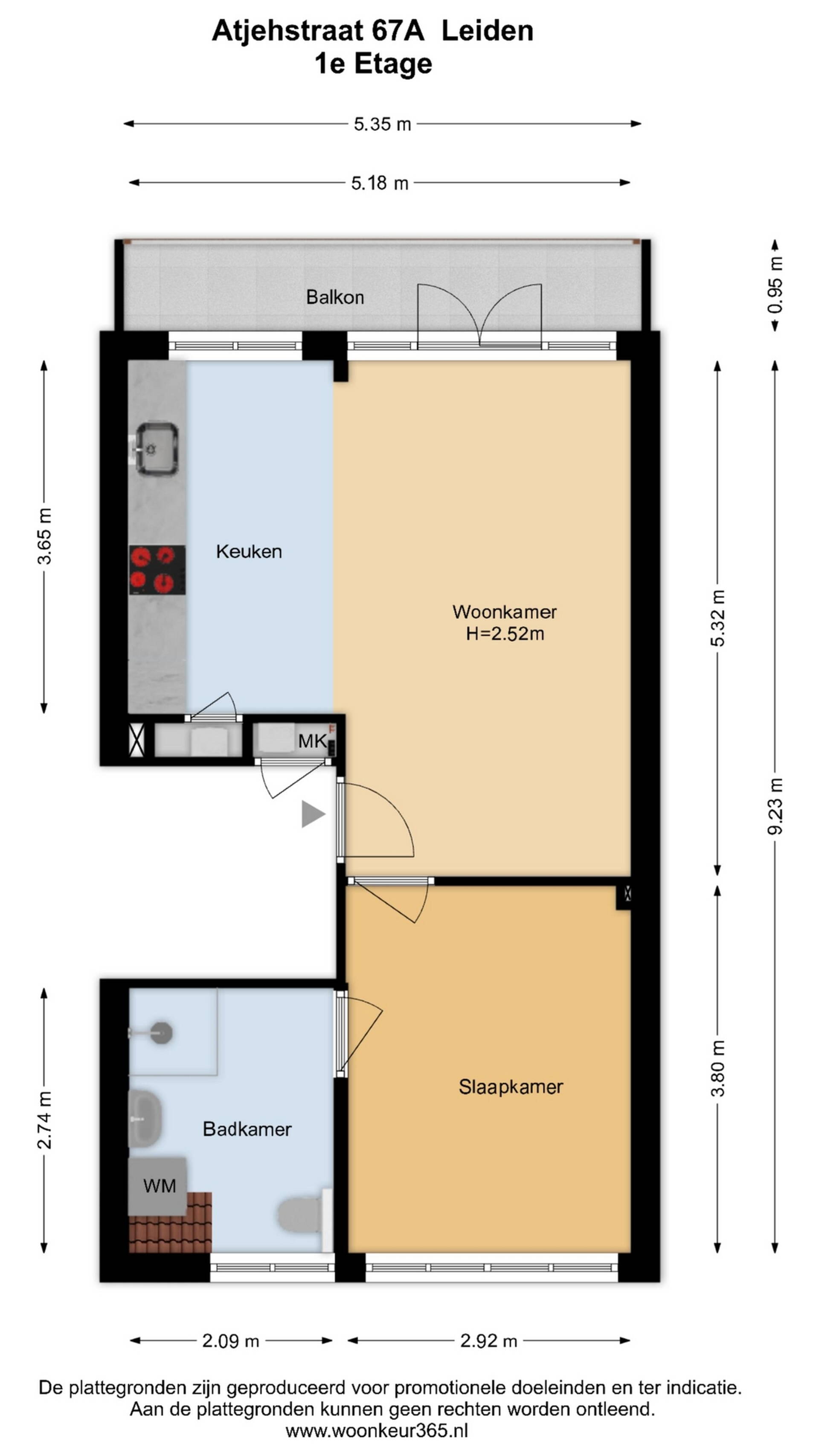 Het balkon (ca. 5,1 m²) ligt aan de achterzijde en is bereikbaar via openslaande deuren – een heerlijke plek om van de zon te genieten.