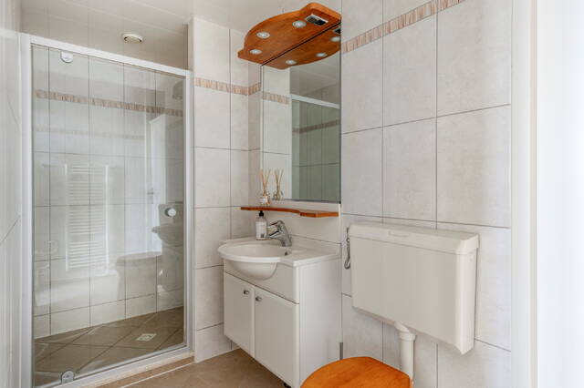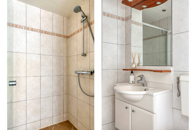 met elkaar verbindt. De badkamer is netjes en functioneel ingericht en
