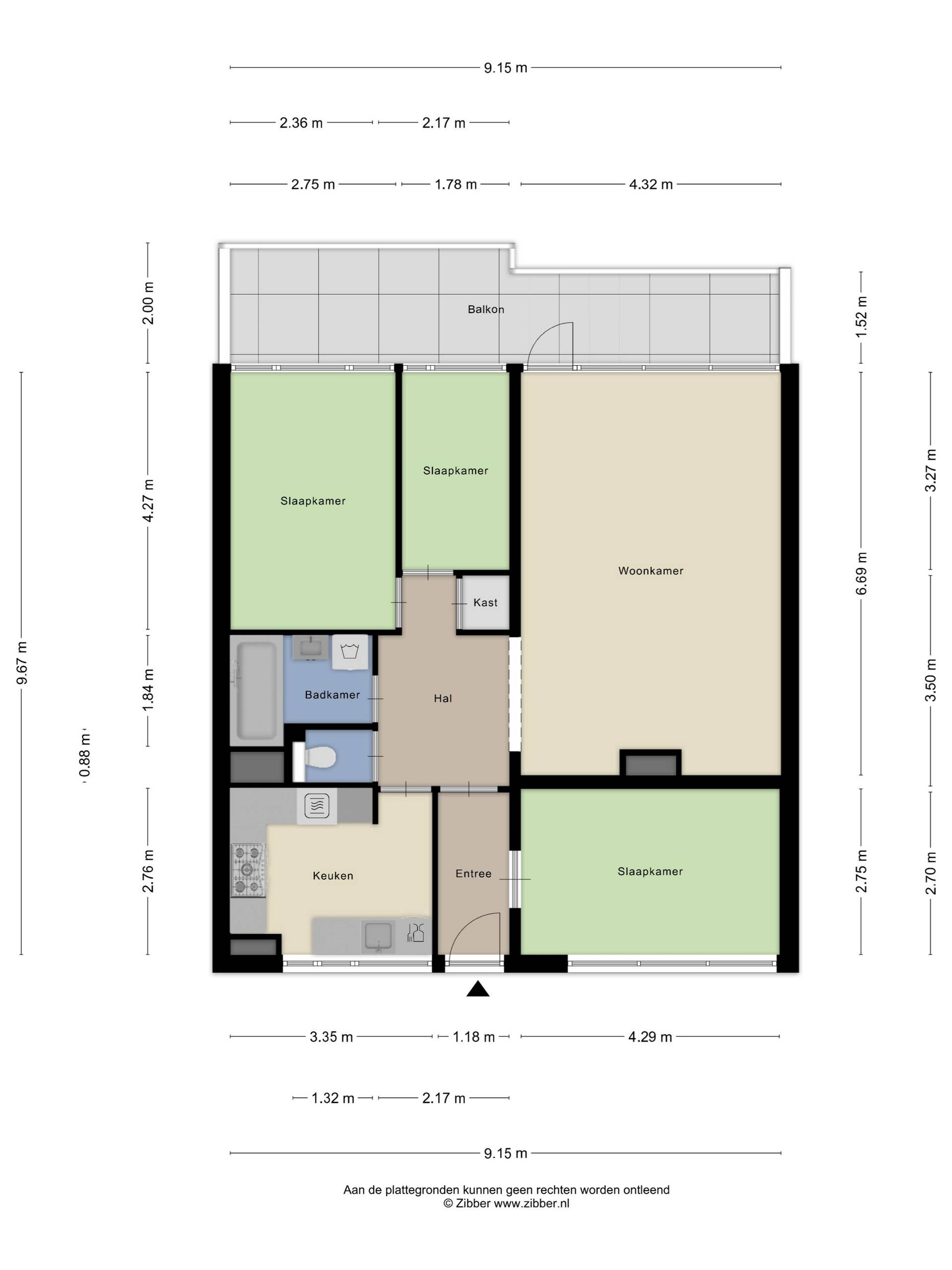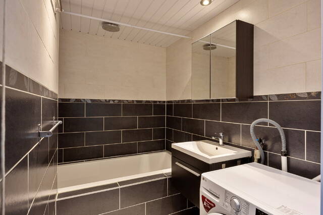De woning beschikt over drie goed bemeten slaapkamers. De moderne badkamer is uitgerust met een ligbad, wastafelmeubel en aansluitingen voor de wasmachine. Het toilet bevindt zich apart van de badkamer.