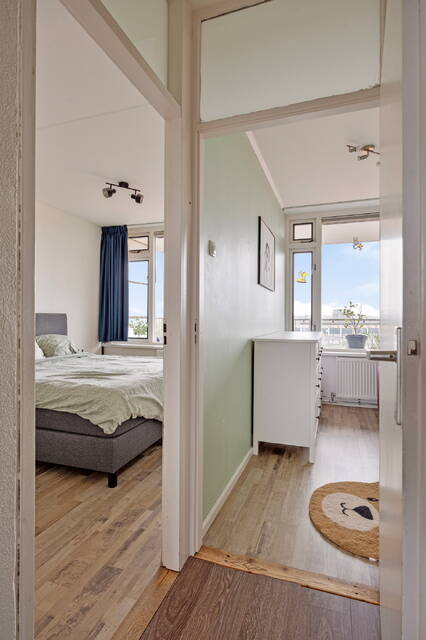 Het appartement ligt in de populaire Merenwijk, een groene en ruim opgezette woonwijk in het noorden van Leiden. Je woont hier in een rustige omgeving met alle dagelijkse voorzieningen dichtbij. Winkelcentrum De Kopermolen, scholen, kinderopvang, sportclubs en recreatievoorzieningen liggen op korte afstand. Dankzij de vele fiets- en wandelroutes is de wijk ideaal voor liefhebbers van buiten zijn. Het historische centrum van Leiden bereik je binnen ongeveer 10 minuten fietsen en via de uitvalswegen ben je snel onderweg richting de A4.