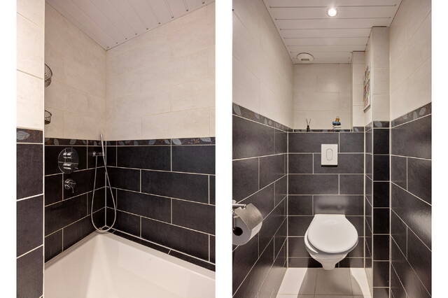 •Stijlvolle badkamer met ligbad en een separaat toilet