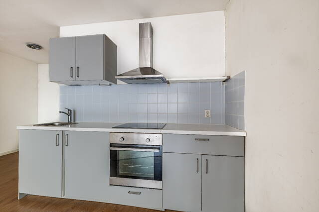 De open keuken wat aan de achterzijde van de woonkamer zit sluit goed aan en is voorzien van diverse inbouwapparatuur, waaronder een oven, inductiekookplaat, afzuigkap en spoelbak.