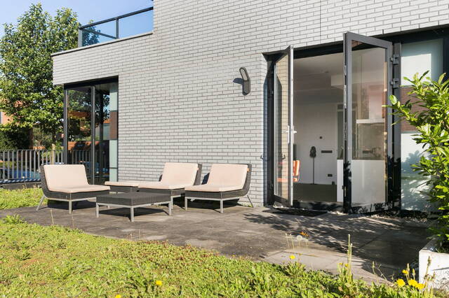 Very luxurious 2 room apartment on the 1st floor, provided with luxurious kitchen, jacuzzi, roof terrace, storage box and private parking in the basement. Located at short biking distance from the City Center and close to exit roads towards Amsterdam, The Hague (A4) and Utrecht (N11).