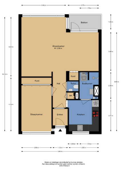 - Gebouw gebonden buitenruimte 4m2 (Balkon)