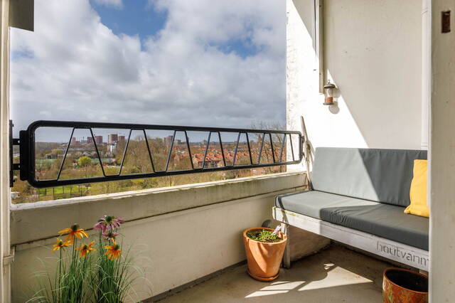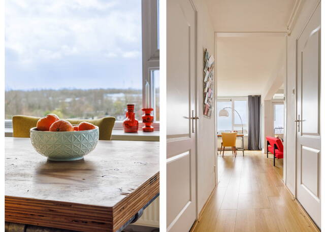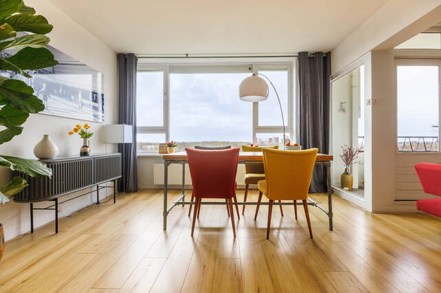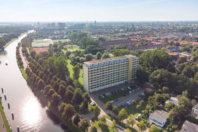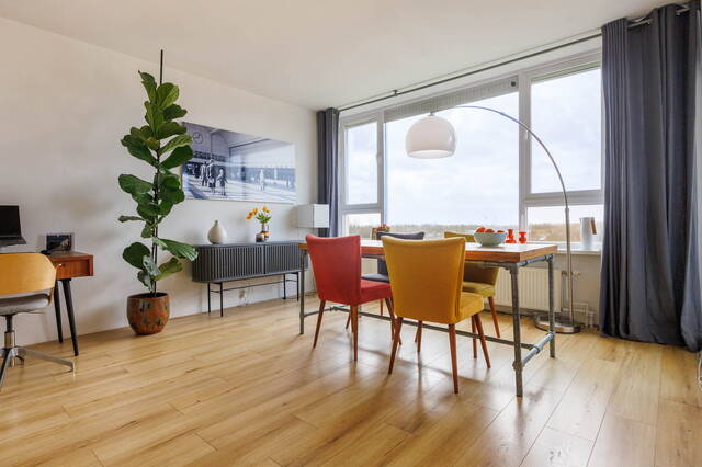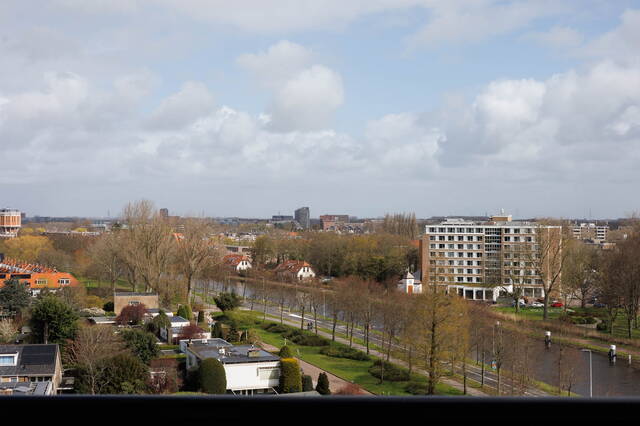 Upon entering, you notice it immediately: what a beautiful, bright apartment—and what a view! This spacious one-bedroom apartment (formerly two bedrooms) is located on the ninth floor and features an internal southwest-facing balcony. The green Park Roomburg and the shimmering waters of the Rijn-Schie Canal lie at your feet. The property has been stylishly modernized and is ready to move into!