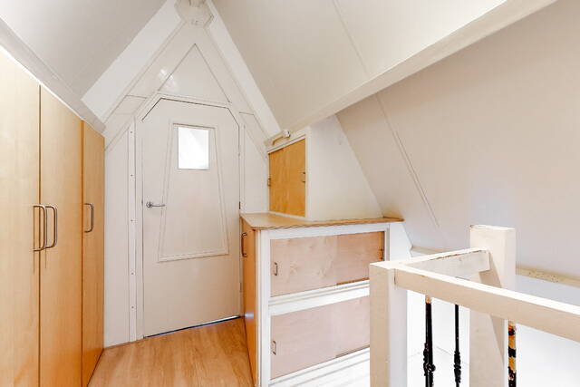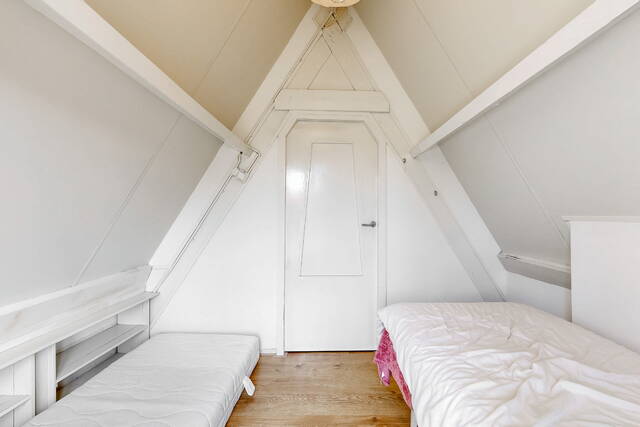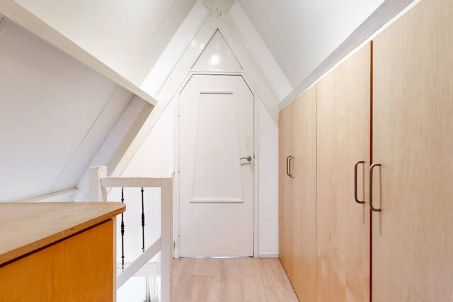 Tweede verdieping: wederom via een vaste trap komt u op de overloop van de bovenste verdieping. Hier vindt u veel kastruimte en toegang tot de twee slaapkamers.