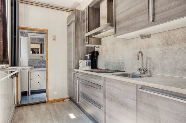Via de entree met trapopgang komt u in de ruime woonkamer, die dankzij de grote raampartijen heerlijk licht is. Aansluitend bevindt zich de keuken met toegang tot de achtergelegen badkamer, toilet en berging. De badkamer is voorzien van douche en een wastafel. Vanuit de keuken bereikt u de zonnige tuin met achterom, ideaal voor gezinnen, hobbytuiniers of om heerlijk buiten te zitten.