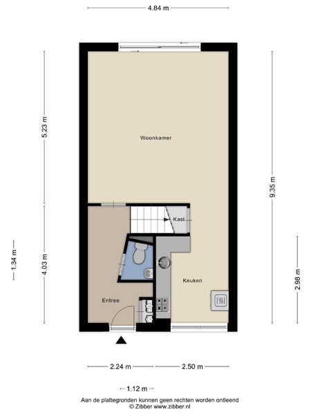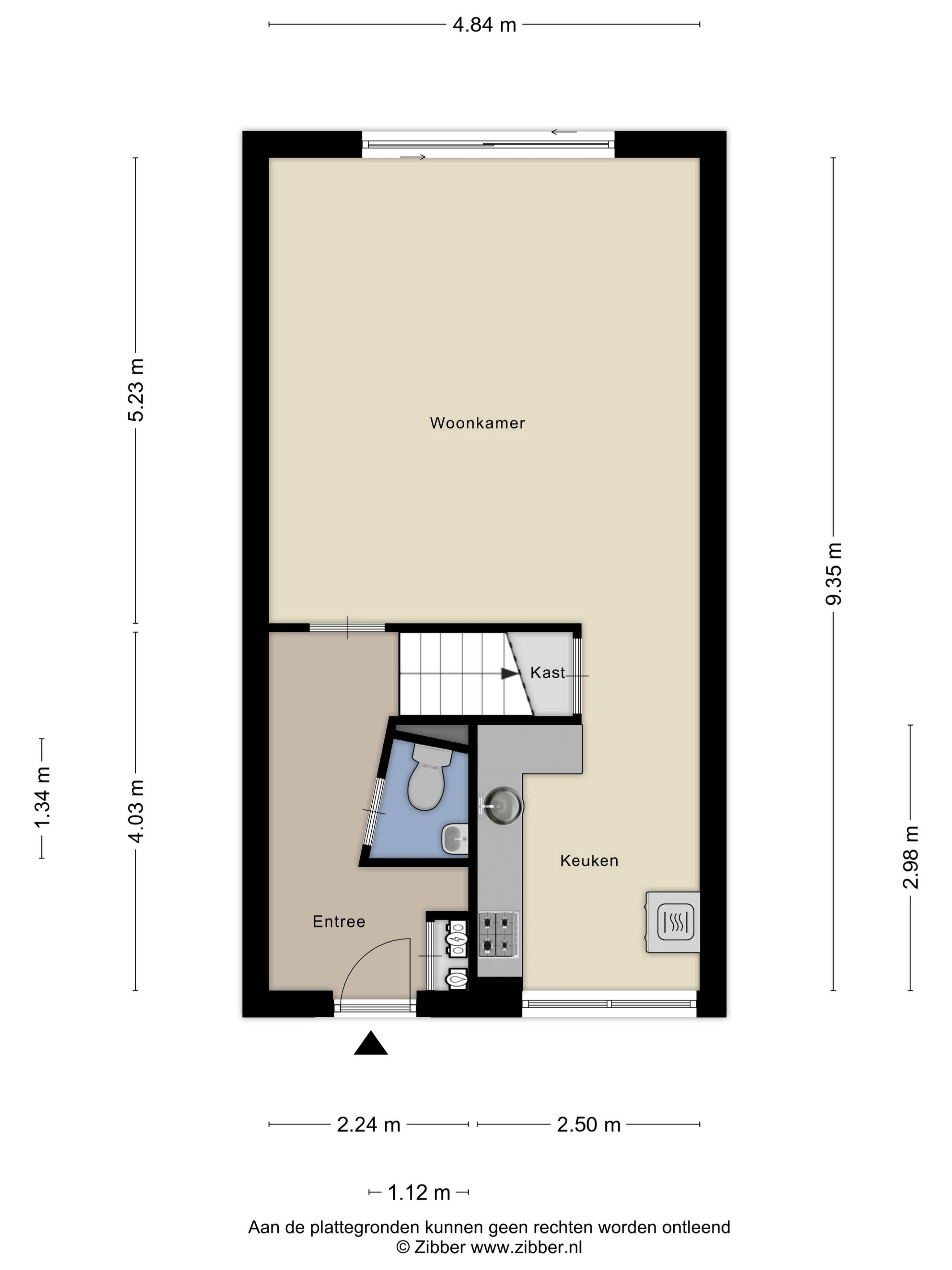 Via de entree kom je in de hal met toilet en trapopgang. De ruime woonkamer aan de achterzijde kijkt uit op de tuin en biedt een prettige leefruimte met veel lichtinval. Aan de voorzijde bevindt zich de keuken, ideaal voor kookliefhebbers.