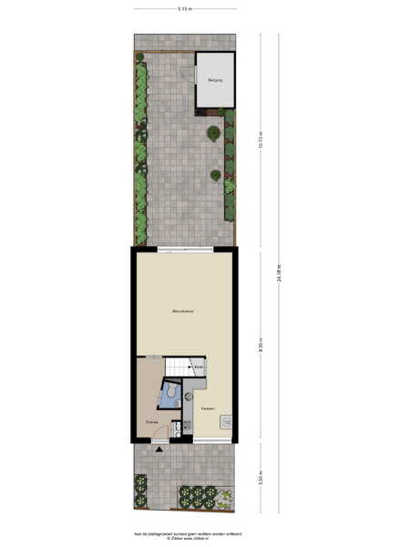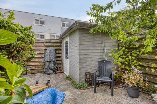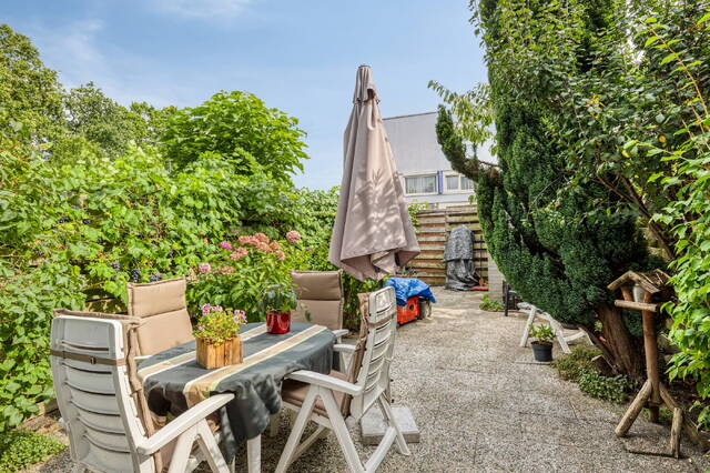 De woning beschikt over een diepe achtertuin van ruim 10 meter met achterom en een vrijstaande berging (ca. 5,2 m²), ideaal voor fietsen en opslag. Zowel in de tuin als op het dakterras is er altijd een plek om van de zon te genieten.