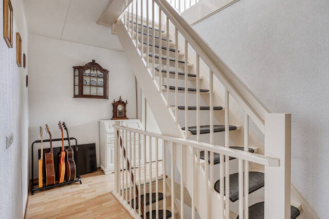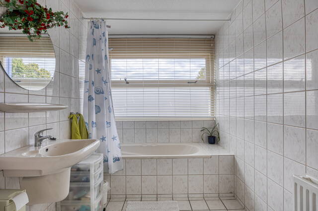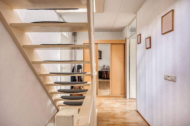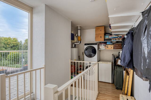 De tweede verdieping biedt een royale slaapkamer en toegang tot het zonnige dakterras van ca. 15 m² een heerlijke plek om te ontspannen. Daarnaast is hier ook extra ruimte voor de wasmachine en droger.