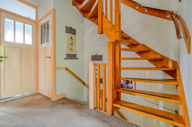Built in the 1930s, the character of that era is still very much present throughout the home. Stained glass windows, a granite floor, original panel doors, bay windows, a classic built-in buffet cabinet, a spice rack in the kitchen, and a vestibule—these features have all been preserved. The house exudes the grandeur of a traditional townhouse.