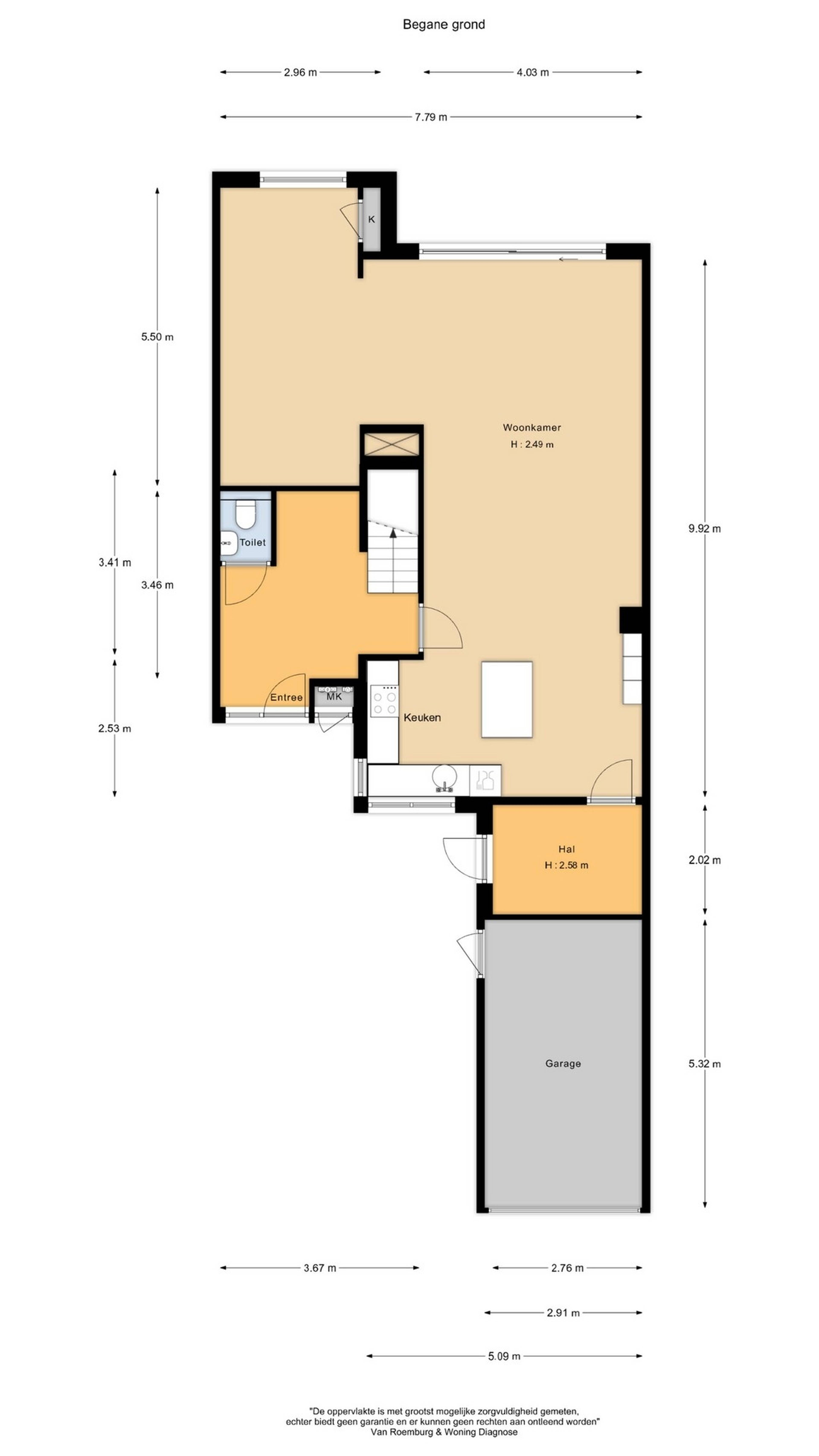 Vanuit de keuken is er toegang tot een extra hal/berging (ook bereikbaar via de voortuin), met aangrenzend een garage. Deze is eventueel aan te passen tot nog een extra kamer.
