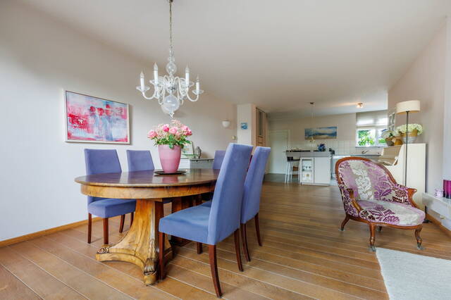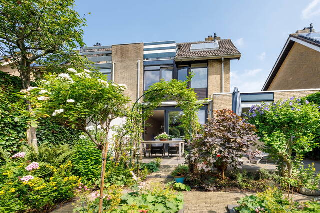 This spacious linked home is located in a lovely, green part of Merenwijk and boasts a beautifully landscaped south-facing garden. In addition to a very generous living room, the property features a garage, three (bed)rooms on the first floor, and a large attic floor with a bedroom, extra storage space, and a balcony offering stunning views of the river Zijl.