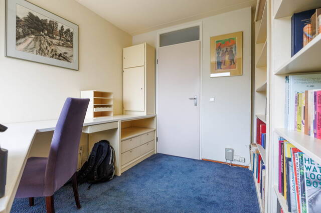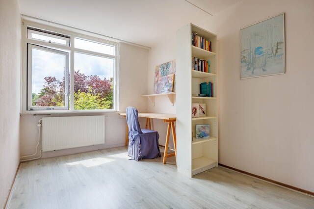 Royale overloop met veel daglicht door het zijraam. Aan de voorzijde van de woning bevindt zich een royale slaapkamer met airco en een inloopkast. Aan de achterzijde van de woning vind je twee ruime en lichte slaap-/werkkamers waarvan 1 tevens beschikt over een wastafel. De moderne en luxe badkamer (2021) is ruim en beschikt over een regendouche, een toilet, een handdoekenradiator en dubbel wastafelmeubel met spiegel, twee zwevende kasten, ingebouwde verlichting en mechanische ventilatie. In de badkamer bevindt zich tevens de opstelling voor de wasmachine en droger.