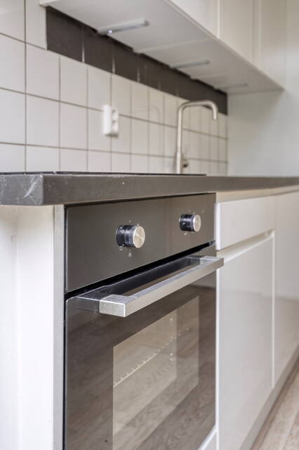 De nieuwe keuken (2023) bevindt zich aan de achterzijde en is voorzien van moderne inbouwapparatuur, voldoende kastruimte, inductie kookplaat, oven, vaatwasser en koel/vries combinatie.