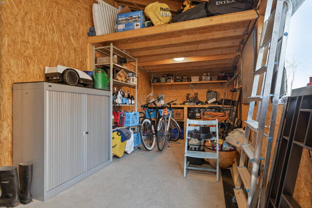 De woning ligt aan het einde van de weg van het Vlietpark, met parkeergelegenheid voor minimaal drie auto’s op eigen terrein en een grote vrijstaande garage die deels is geïsoleerd en beschikt over een ingebouwde zolder voor extra opbergruimte. De garage is daarnaast uitgerust met een laadpaal voor elektrische voertuigen.