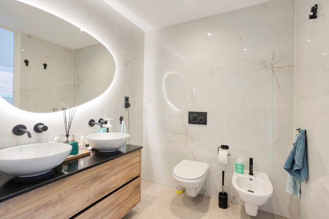 Drie slaapkamers, waaronder een master bedroom. Eén van de slaapkamers wordt momenteel gebruikt als werkruimte en biedt toegang tot het dakterras. De moderne badkamer is uitgerust met een inloopdouche, dubbele wastafel, bidet en toilet.