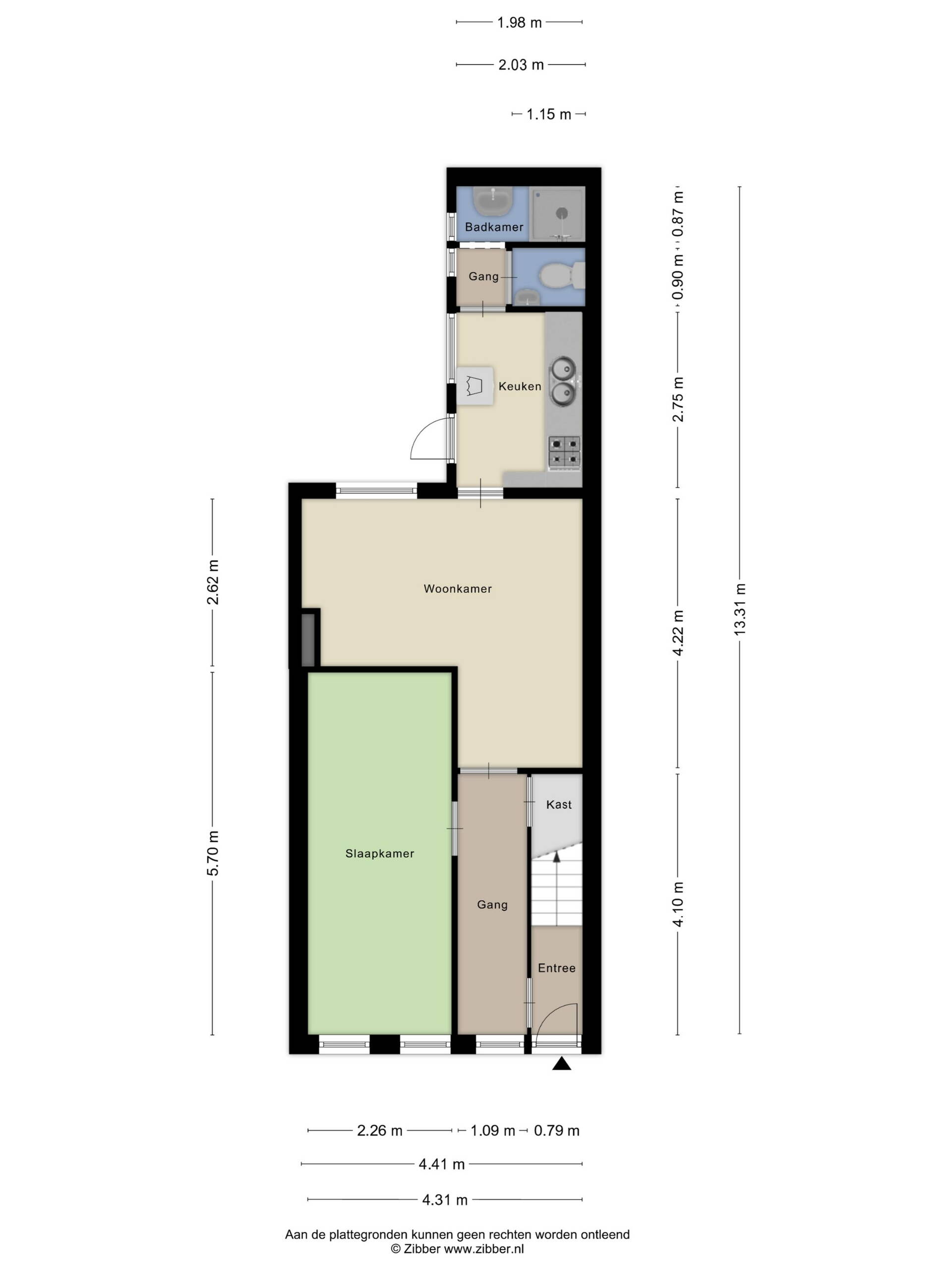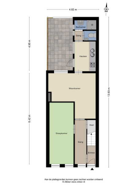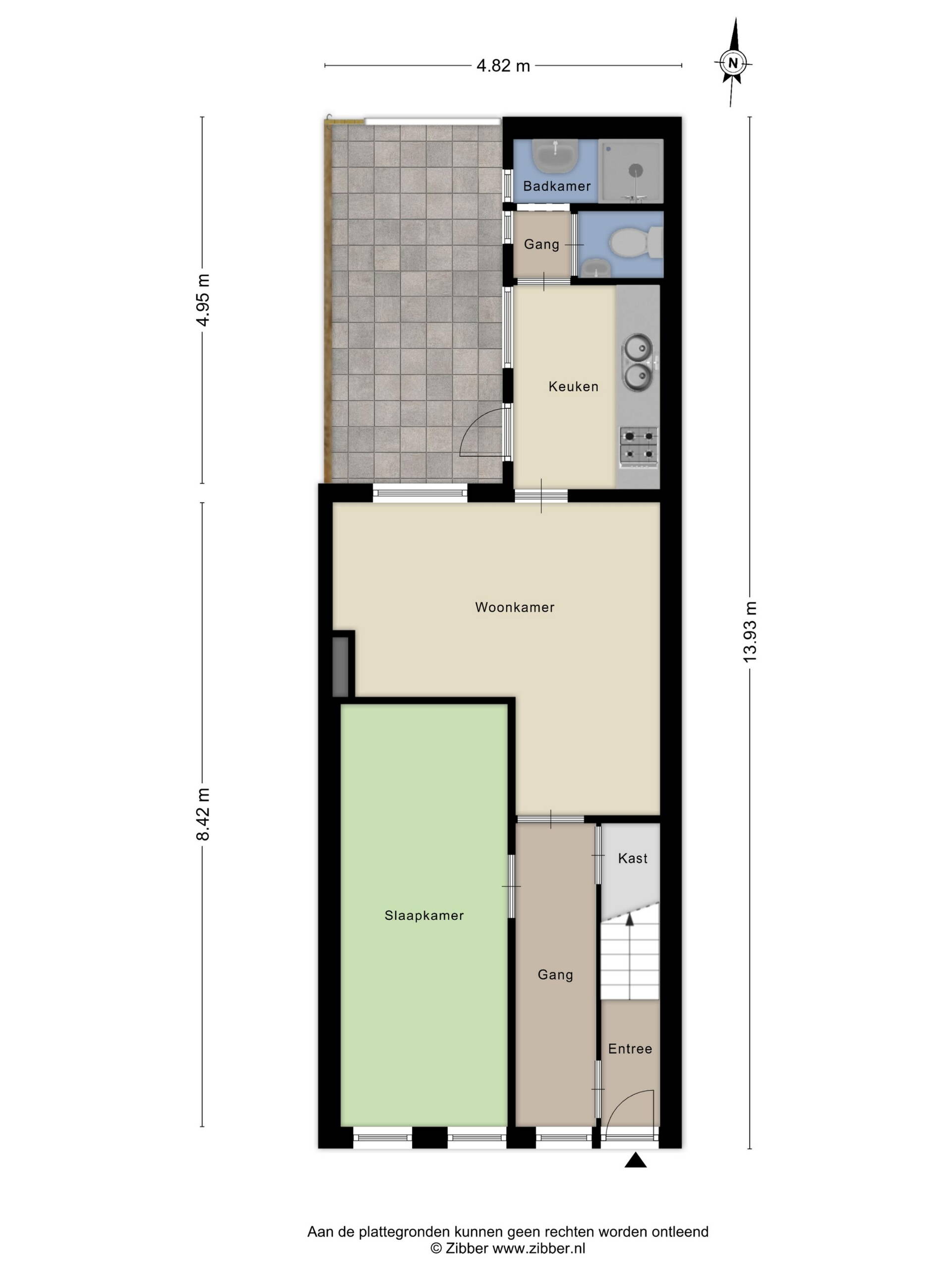 Via de entree komt u in de hal met trapopgang naar de verdiepingen. In de hal bevindt zich de meterkast en onder de trap de bergruimte. Aan de voorzijde ligt een kamer die kan worden ingericht als slaapkamer, werkkamer of door verwijdering daarvan zonder dat bouwkundige ingrepen bij de woonkamer kan worden getrokken. Aan de achterzijde bevindt zich de woonkamer. In de aanbouw aan de parterre is de keuken gesitueerd, van waar u direct toegang heeft tot het betegelde plaatsje van ca. 11m 2. Achter de keuken bevinden zich een separaat toilet en een doucheruimte. De begane grond heeft een praktische indeling en biedt volop mogelijkheden deze geheel naar eigen wens te moderniseren.