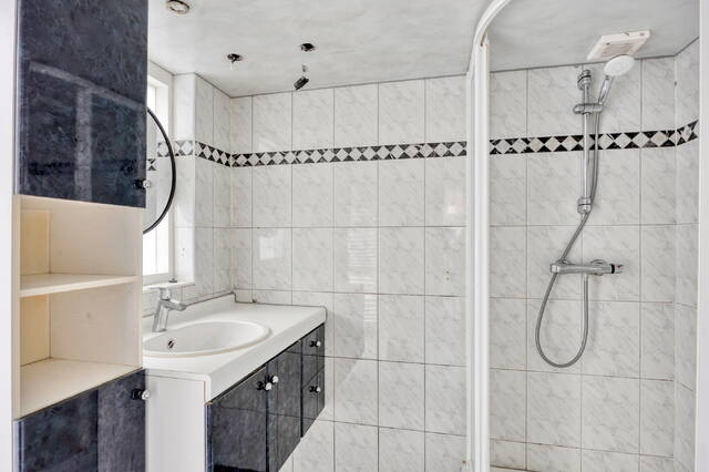 De badkamer beschikt over een douchecabine, toilet en wastafel. Vanuit de badkamer heeft u toegang tot de binnenplaats van circa 7 m², waar je heerlijk buiten kan zitten.