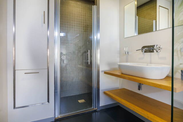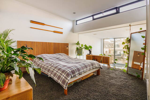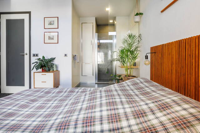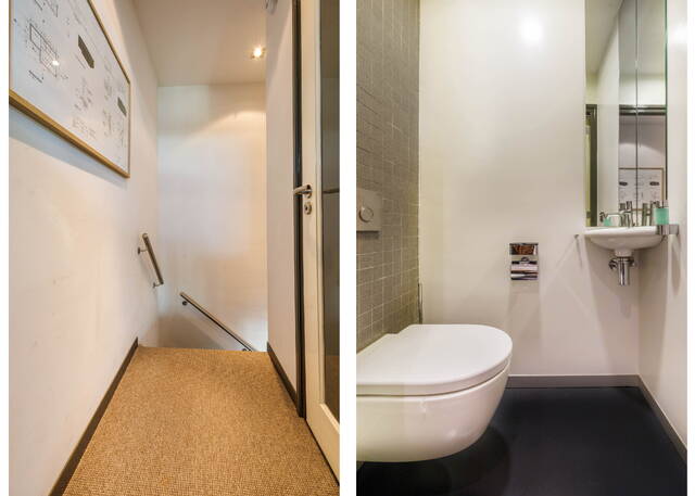 Overloop met toilet. De royale slaapkamer is voorzien van een inbouwkast. Door het glaswerk kunt u ’s ochtends bij het wakker worden genieten van het prachtige uitzicht op de Rijn. De badkamer is en suite en is voorzien van een wastafelmeubel, een inloopdouche en opbergruimte.