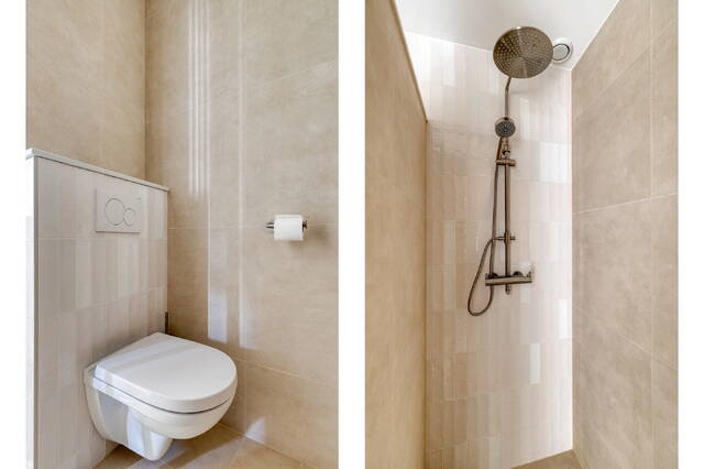 Overloop met toegang tot twee slaapkamers en de badkamer. De kamers zijn efficiënt ingedeeld en geschikt als slaap-, werk- of logeerruimte. De grootste slaapkamer heeft een rustige ligging en een fijne lichtinval. De luxe is uitgevoerd in een moderne stijl met een inloopdouche en wastafelmeubel, passend bij de afwerking van de woning.